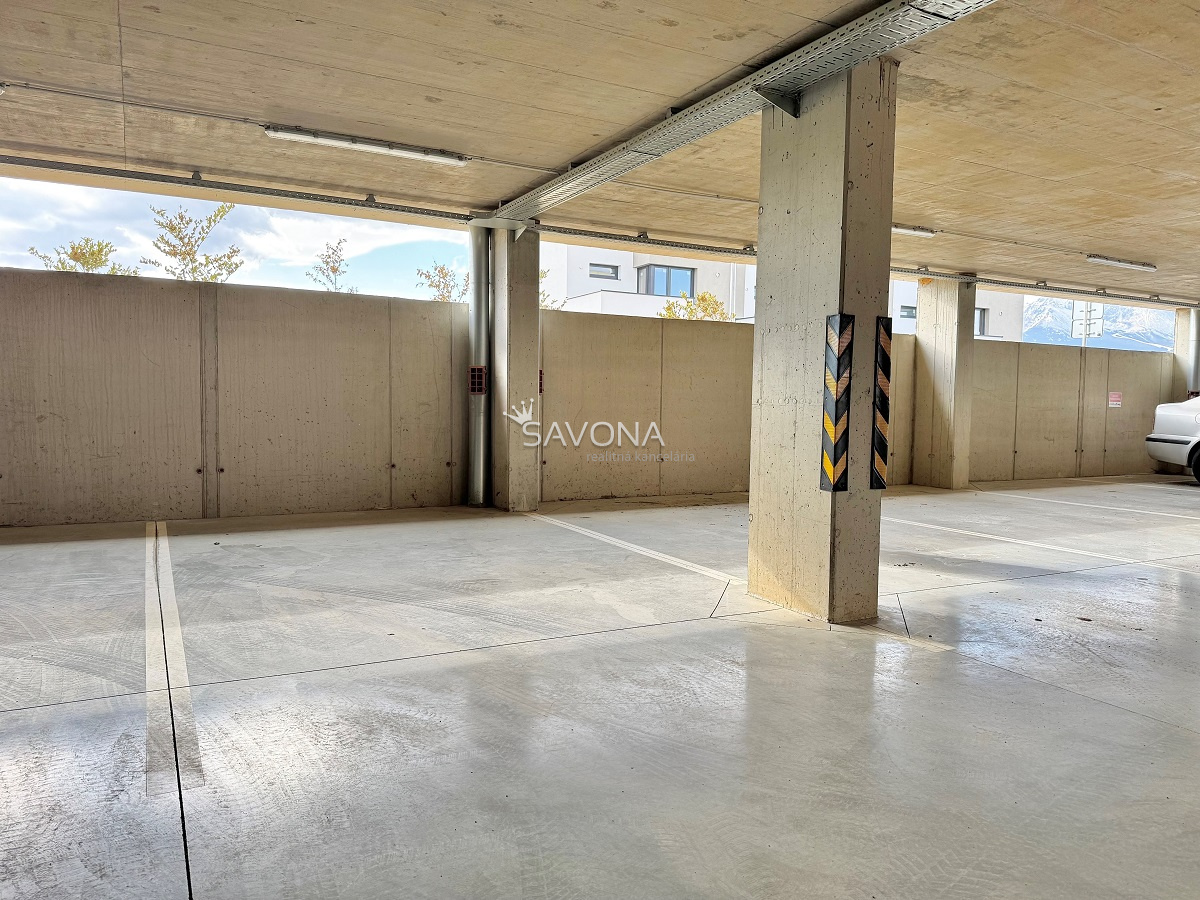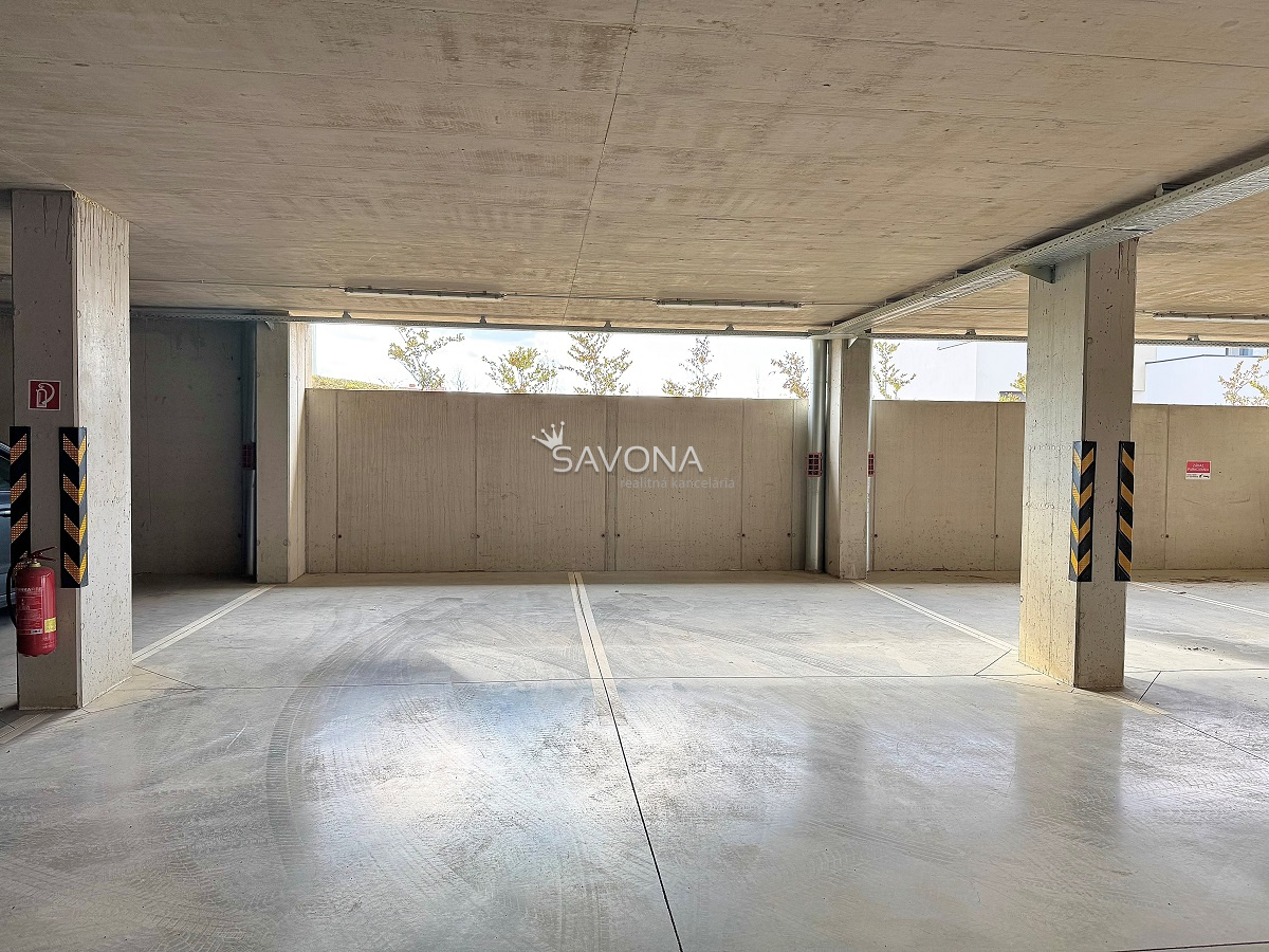 • PARKOVANIE v krytej garáži pod bytovým domom (1PP) – vyhradené státie 14,00 m2