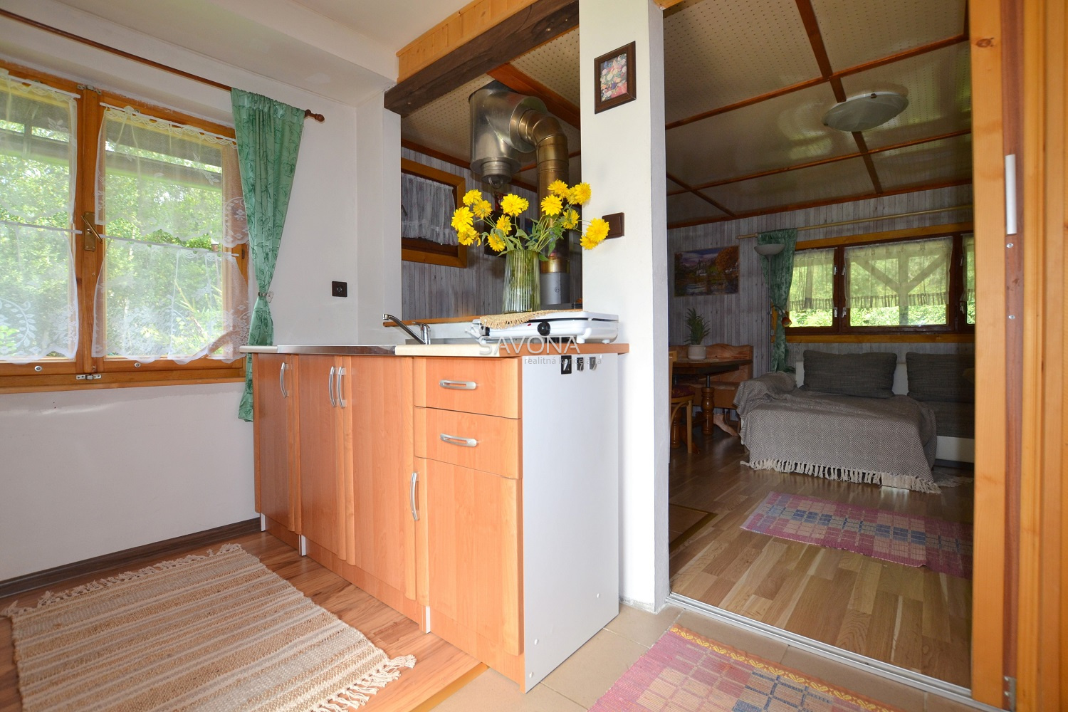 • je z časti murovaná (ako je kuchynka), inak drevená
